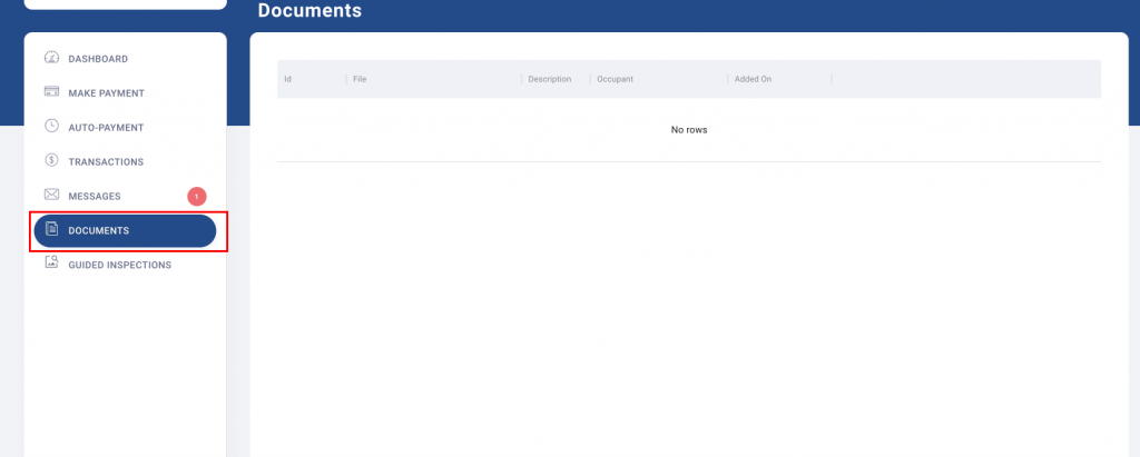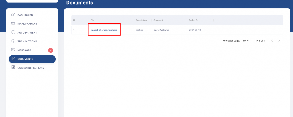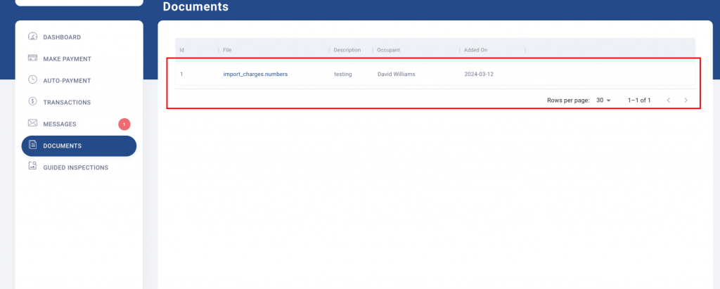 2. All documents related to the resident will appear in the listing, ex. lease.