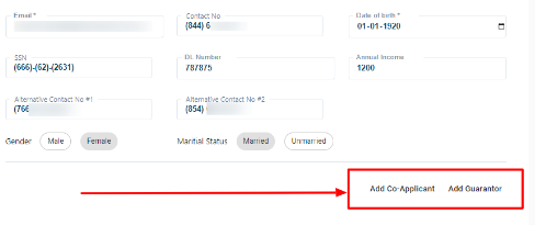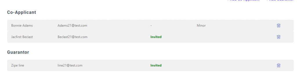 - Once the co-applicant and guarantor are added, they will be seen in the application listing as shown below.