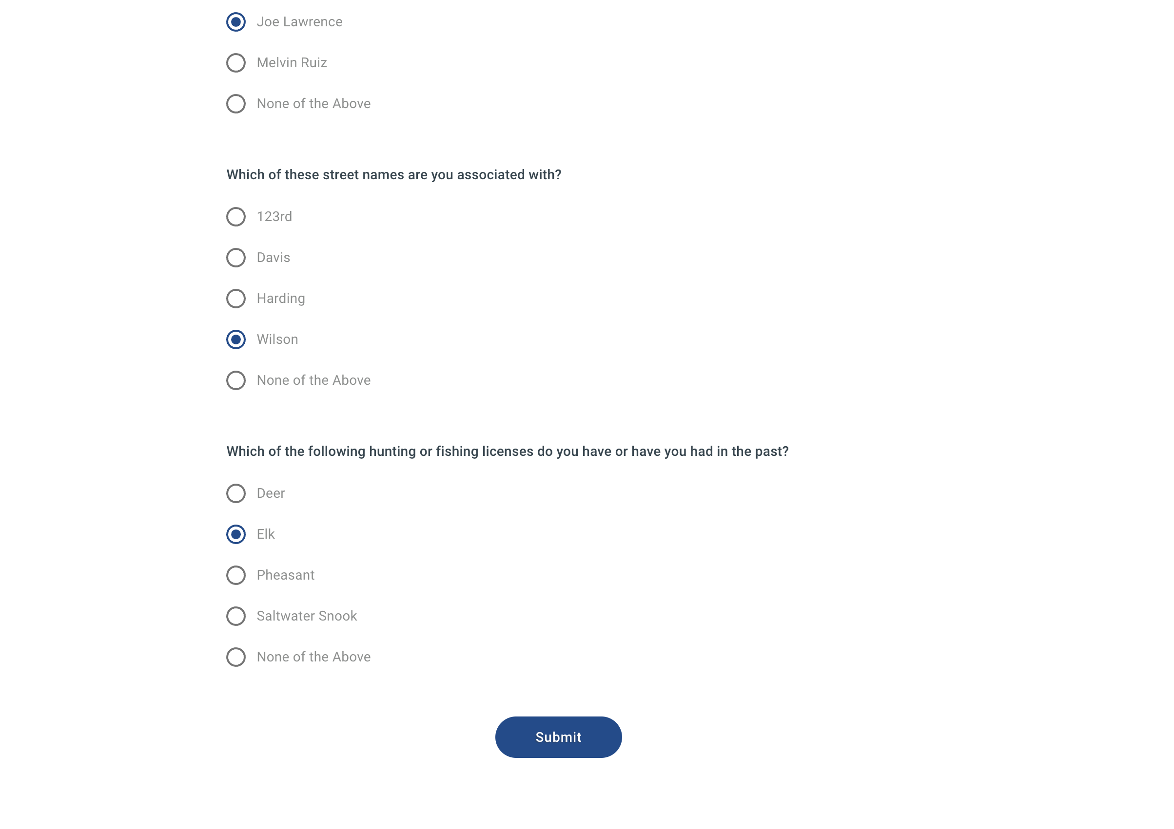 - Mark the correct answers to confirm your identity.