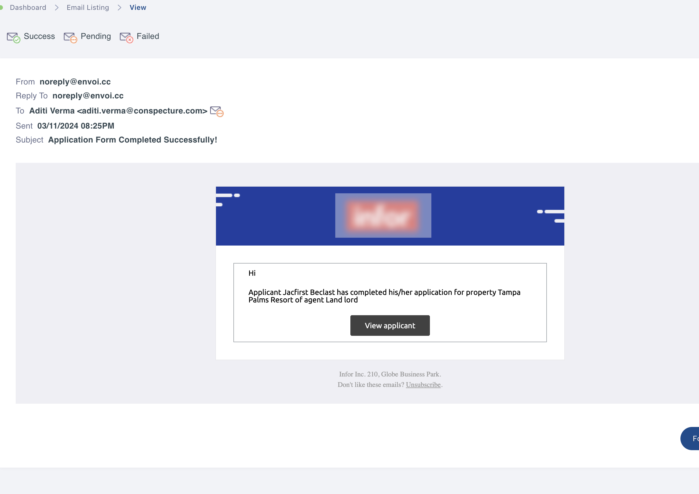 4. Check email for an invitation link to sign in to your resident/tenant portal to view the application form.